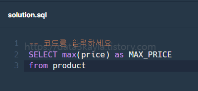 PRODUCT 테이블에서 판매 중인 상품 중 가장 높은 판매가를 출력하는 SQL문을 작성하라.