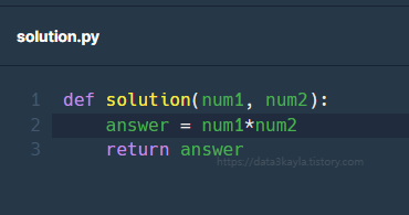 정수 num1, num2가 매개변수 주어집니다. num1과 num2를 곱한 값을 return 하도록 solution 함수를 완성해주세요.