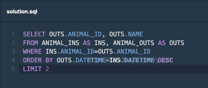 - 어떤 테이블에서 데이터를 뽑을 것인가 : ANIMAL_INS, ANIMAL_OUTS