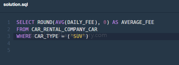 - 어떤 컬럼을 이용할 것인가 : CAR_TYPE, DAILY_FEE