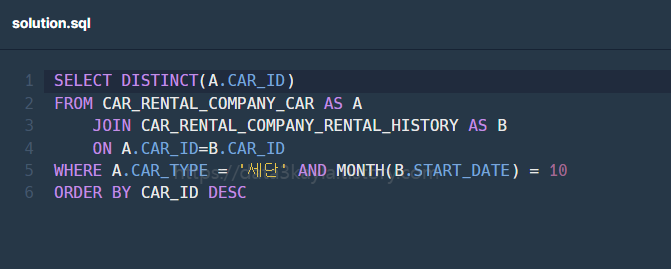 문제 다음은 중고거래 게시판 정보를 담은 USED_GOODS_BOARD 테이블이다. USED_GOOD_BOARD 테이블은 다음과 같다. BOARD_ID은 게시글 ID, WRITER_ID는 작성자 ID, TITLE는 게시글 제목, CONTENTS는 게시글 내용, PRICE는 가격, CREATED_DATE는 작성일, STATUS는 거래상태, VIEWS는 조회수를 의미한다. USED_GOODS_BOARD 테이블에서 2022년 10월 5일에 등록된 중고거래 게시물의 게시글 ID, 작성자 ID, 게시글 제목, 가격, 거래상태를 조회하는 SQL문을 작성하라. 거래상태가 SALE 이면 판매중, RESERVED이면 예약중, DONE이면 거래완료 분류하여 출력하고, 결과는 게시글 ID를 기준으로 내림차순 정렬하라.조건어..